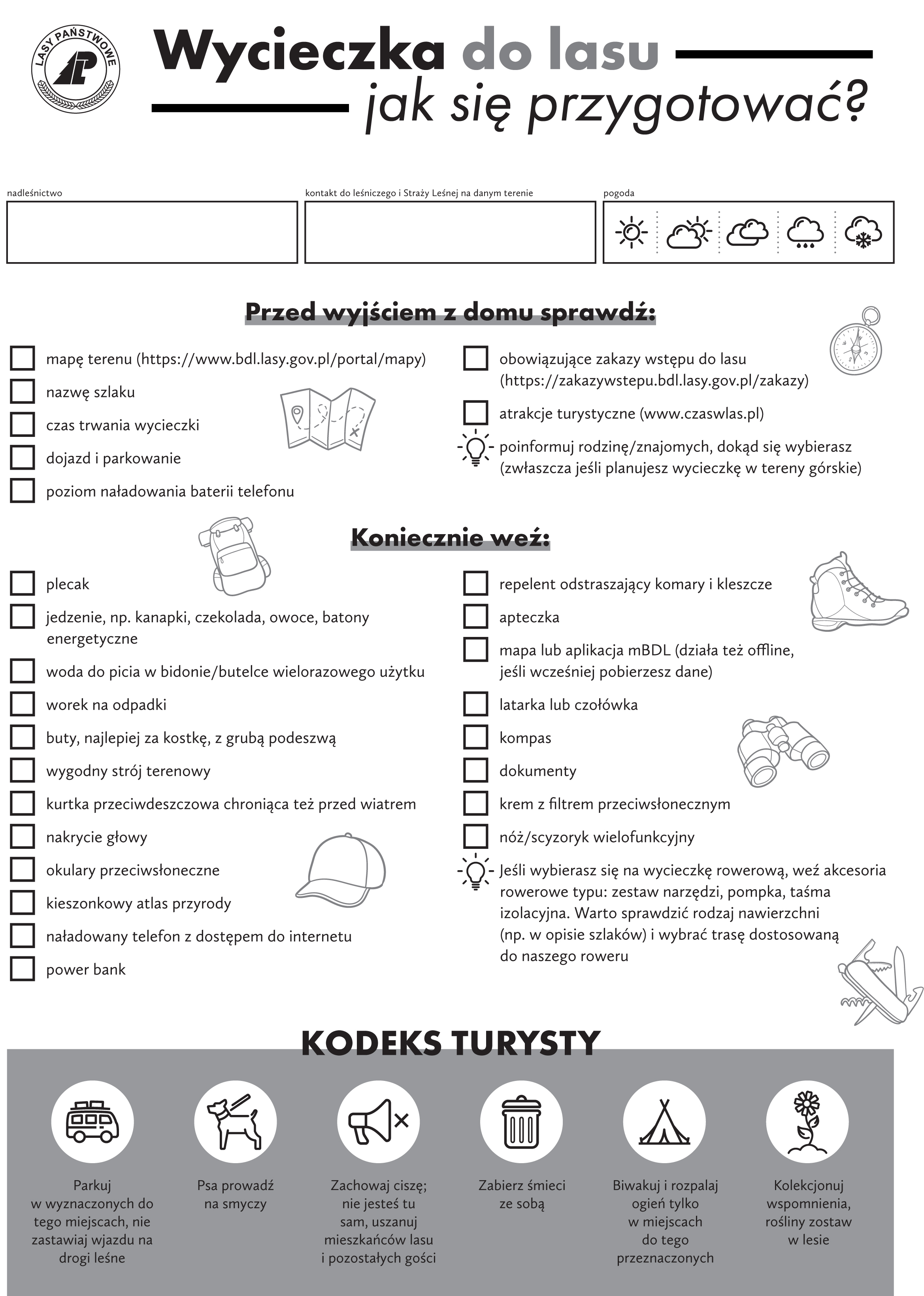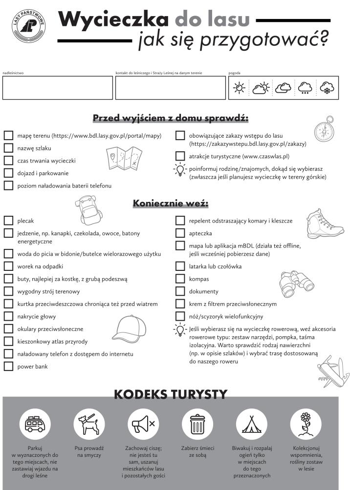 Chcesz bezpiecznie wyruszyć na wyprawę do lasu? Pobierz listę rzeczy, które musisz przygotować z linku poniżej artykułu.