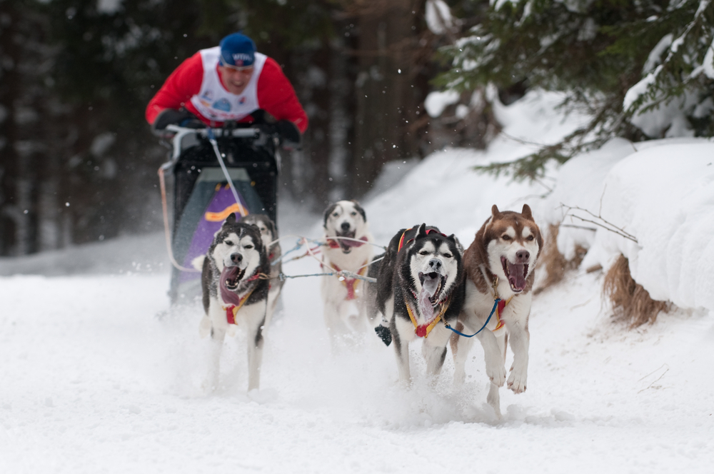 Błękitne niebo. Wzdłuż drogi stoją rzędy drzew w białych czapach. Spod płóz sanek, ciągniętych przez dwie pary puszystych psów, pryskają w górę kawałki zmrożonego śniegu. Człowiek stojący na sankach krzyczy w niezrozumiałym języku. To nie jest obrazek z dalekiej Laponii, ani ekranizacja książki Jacka Londona, ale coraz częstszy widok w naszym kraju.